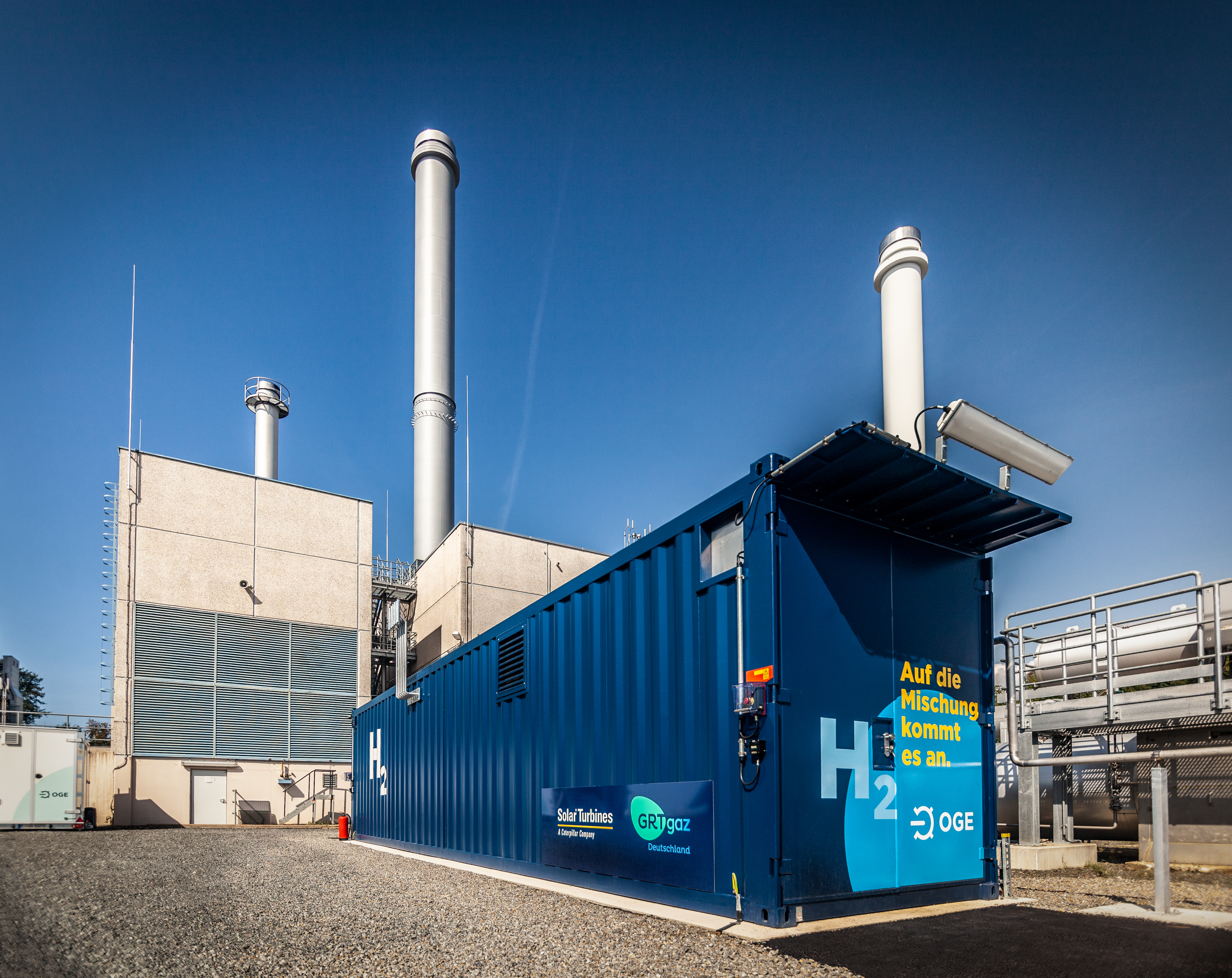 Essen/Waidhaus, 23.02.2023 – GRTZgaz Deutschland, OGE und Solar Turbines haben eine emissionsarme Solar-Gasturbine Titan 130 SoLoNOx als Antriebsmaschine eines Erdgasverdichters mit einer Wasserstoffbeimischung von bis zu 25 Prozent erfolgreich getestet. Diese Gasturbinen werden normalerweise ausschließlich mit dem transportierten Erdgas angetrieben.